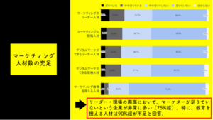 「マーケティング人材が足りているか」という質問に対して、75%超の企業が「足りていない」と回答しています。