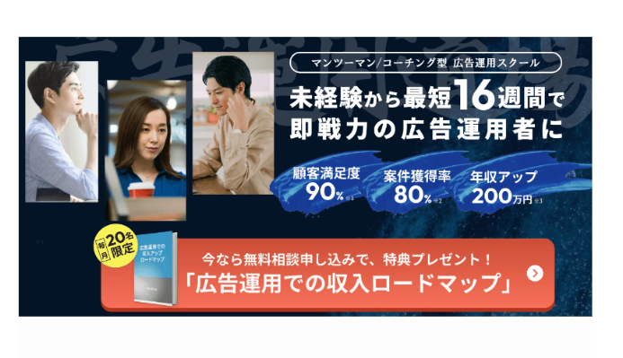 「短期間で広告運用に特化した副業力を身につけたい人」におすすめです。スパルタ式で実力を養えます。