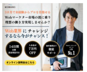- WEBMARKS(⇒他校と違ってSEOも本格的に学べる・リスキリング補助金対象)